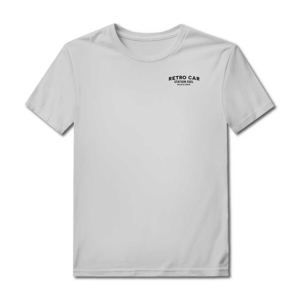 Frontprint: Dezenter Brustprint „Retro Car – Station Fuel – MARXIÈRE“